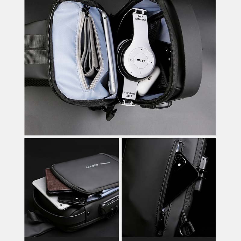 Anti-theft Waterproof Large Capacity Casual Sling Bag With USB Charging Port & Reflective Strip