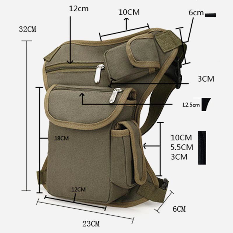 Bag Size: 9.06" × 2.36" × 12.6" /23×6×32CM, Waist Straps Length: 90CM/35.43", Leg Strap Length: 50M/19.69"
