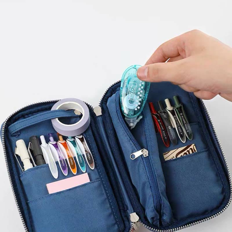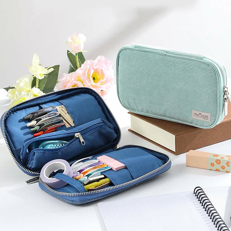 Pencil Case for Student Minimalist Plain Color Polyester Multi-Function Bag