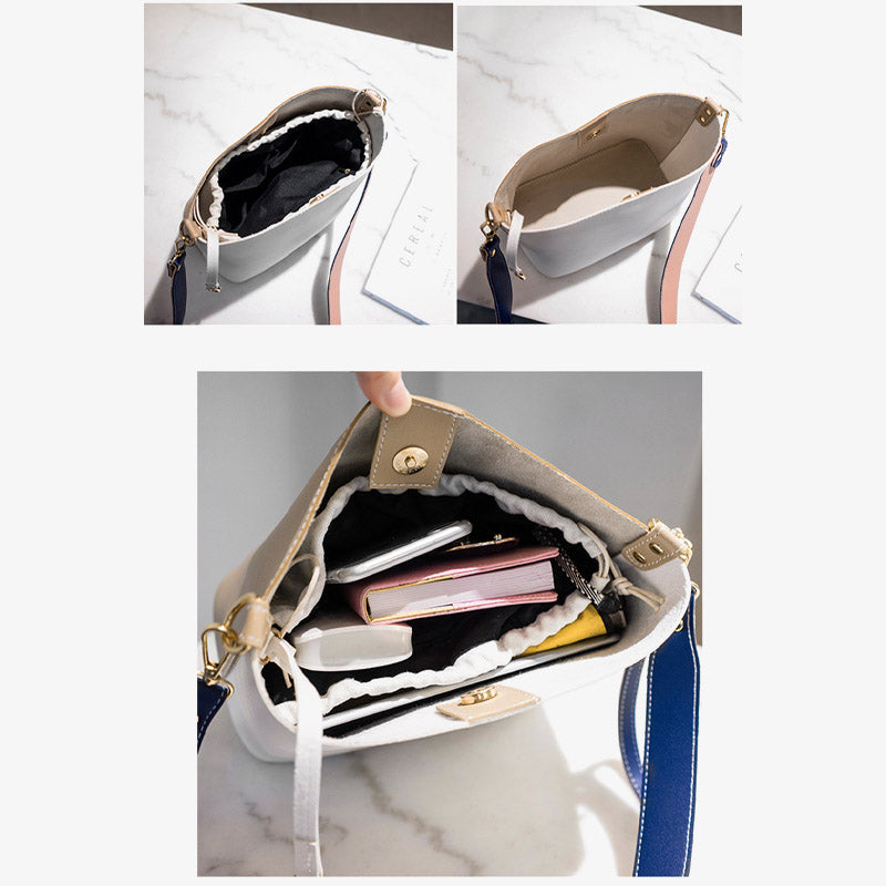 Color Contrast Leather Bucket Purse Adjustable Strap Crossbody Bag