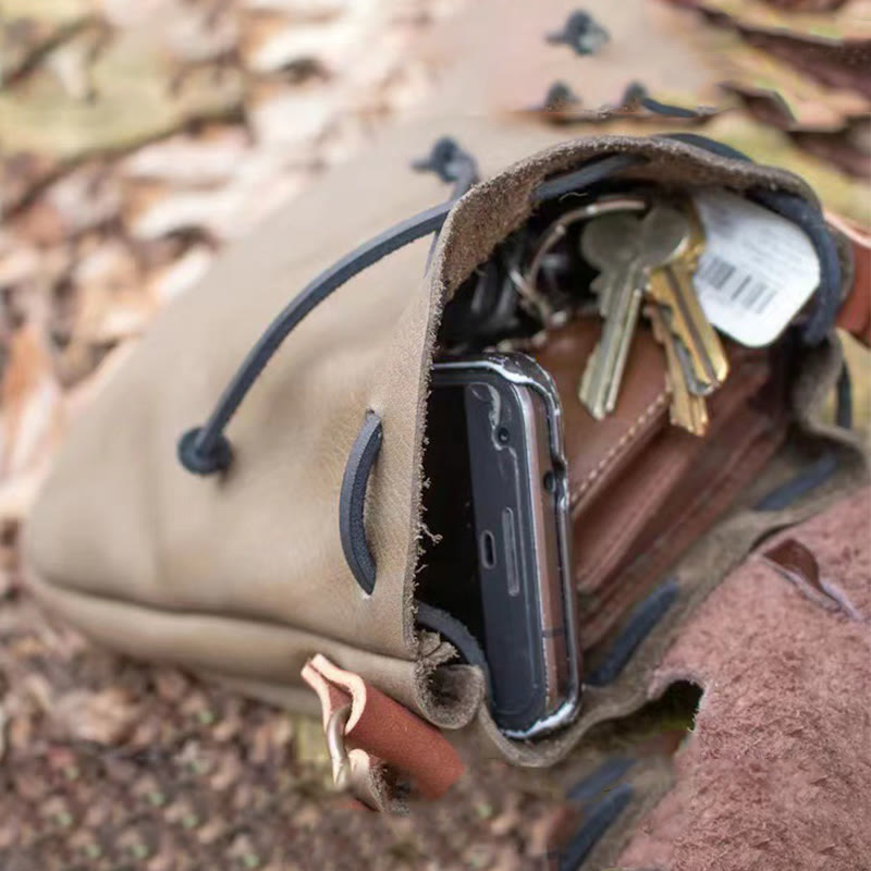 Classic Daypack For Women Outing Drawstring Clamshell Leather Backpack