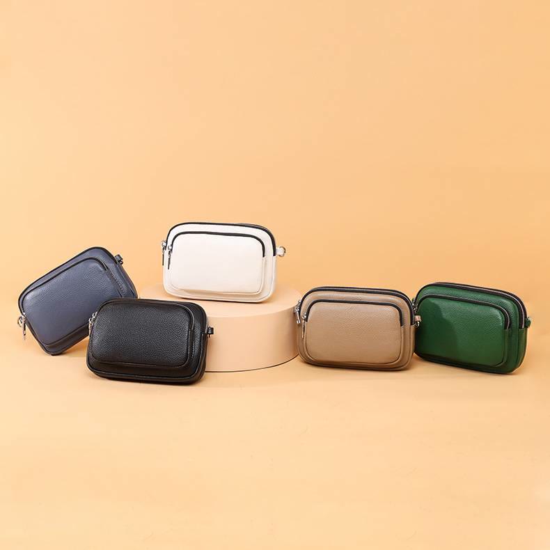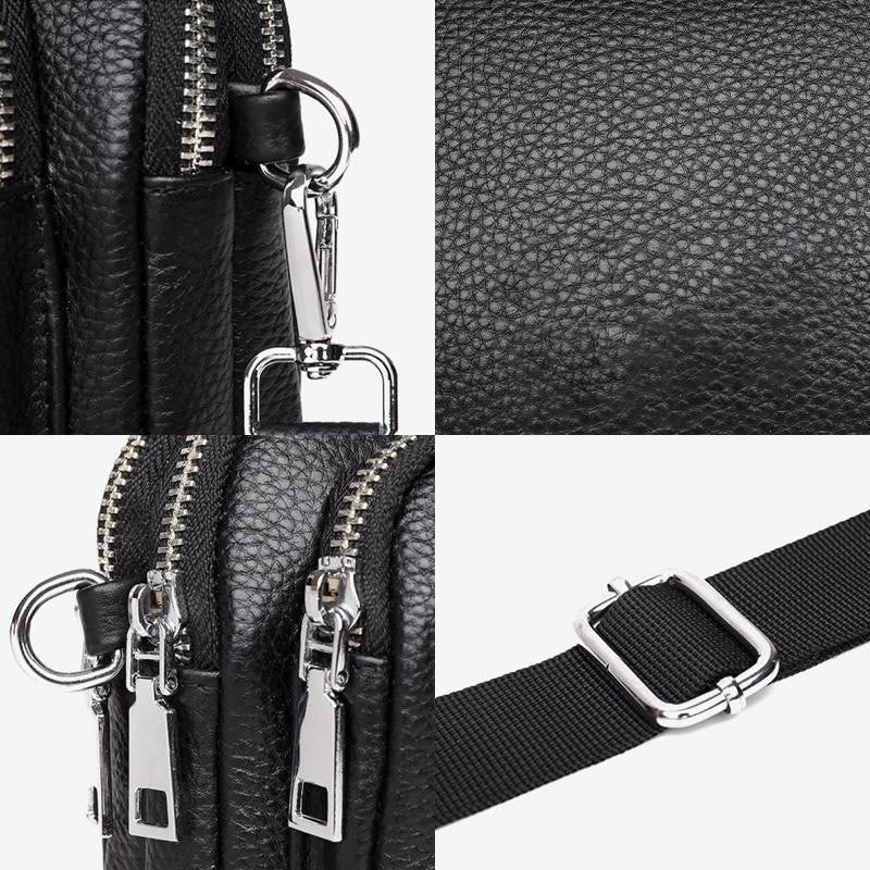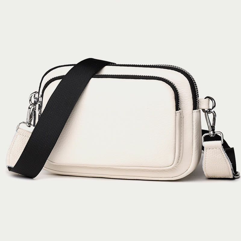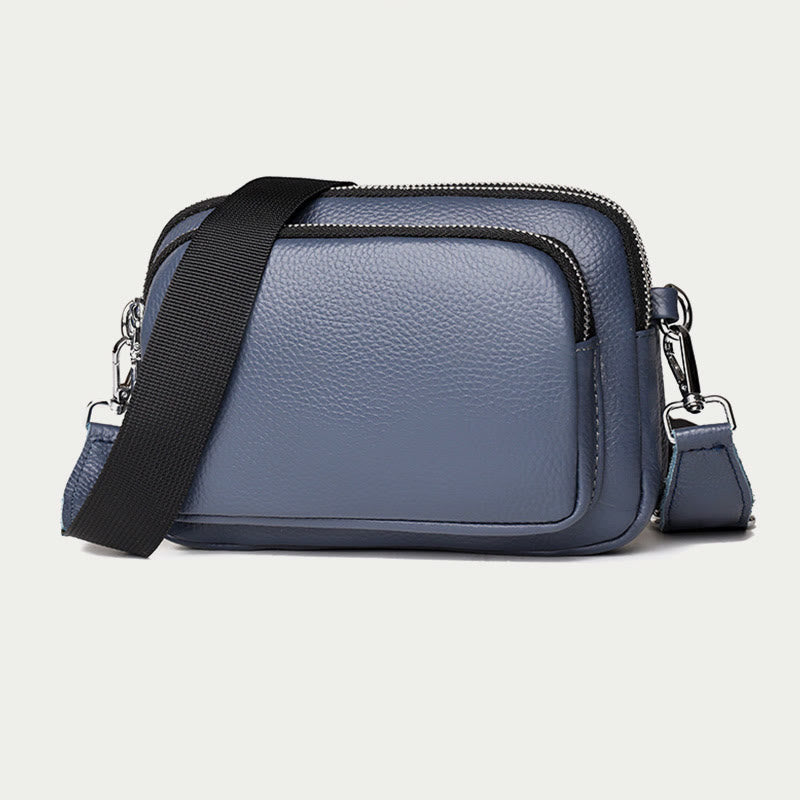 Triple Zip Genuine Leather Crossbody Bag Casual Travel Purse