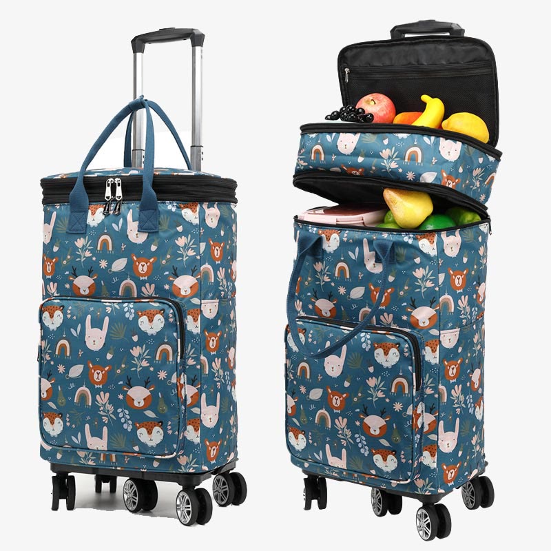 Telescopic Rod Rolling Tote Bag Folding Heat Preservation Shopping Cart