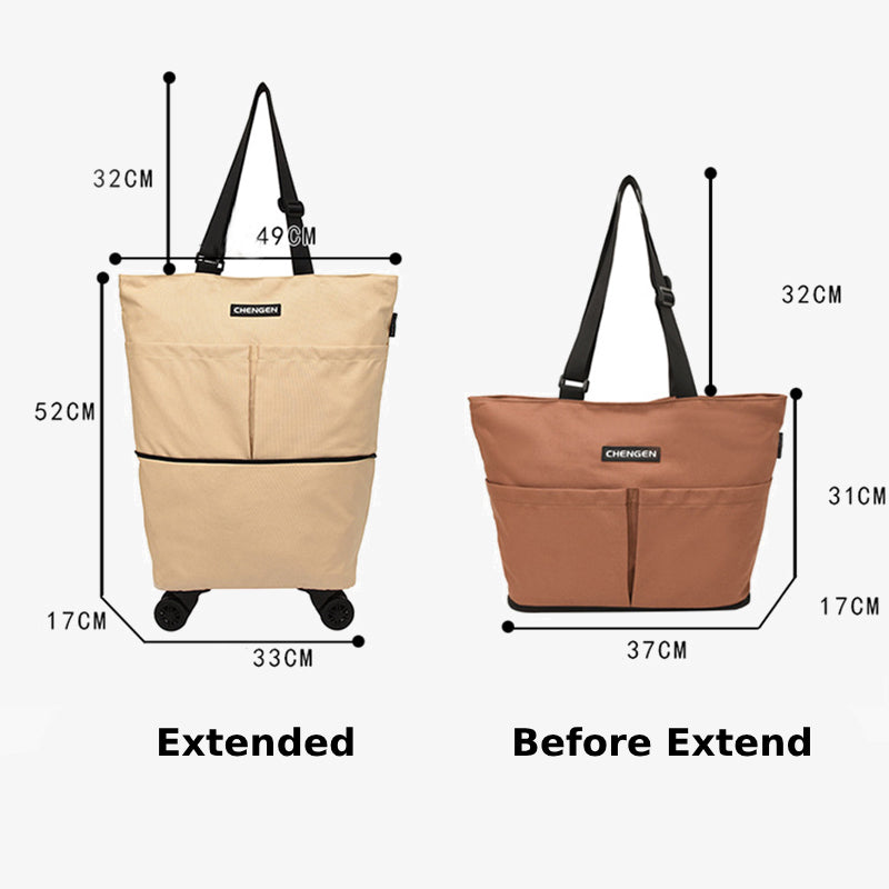 - Detachable 4 Wheels Style: 14.57" × 6.69" × 12.2" /37×17×31CM, Extended: 12.99" × 6.69" × 20.47" /33×17×52CM