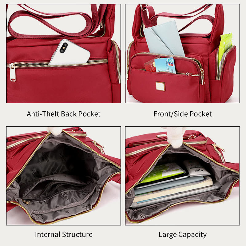 4 Zip Crossbody Bag Lightweight Nylon Purse for Women