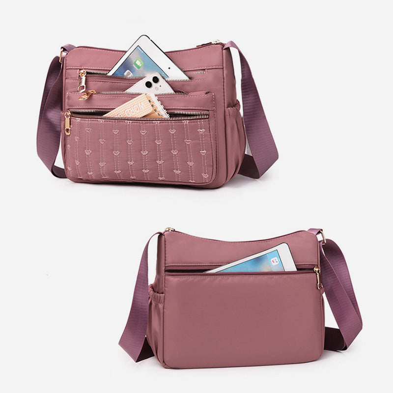 Lightweight Nylon Purse For Women Heart Embroideried Crossbody Bag