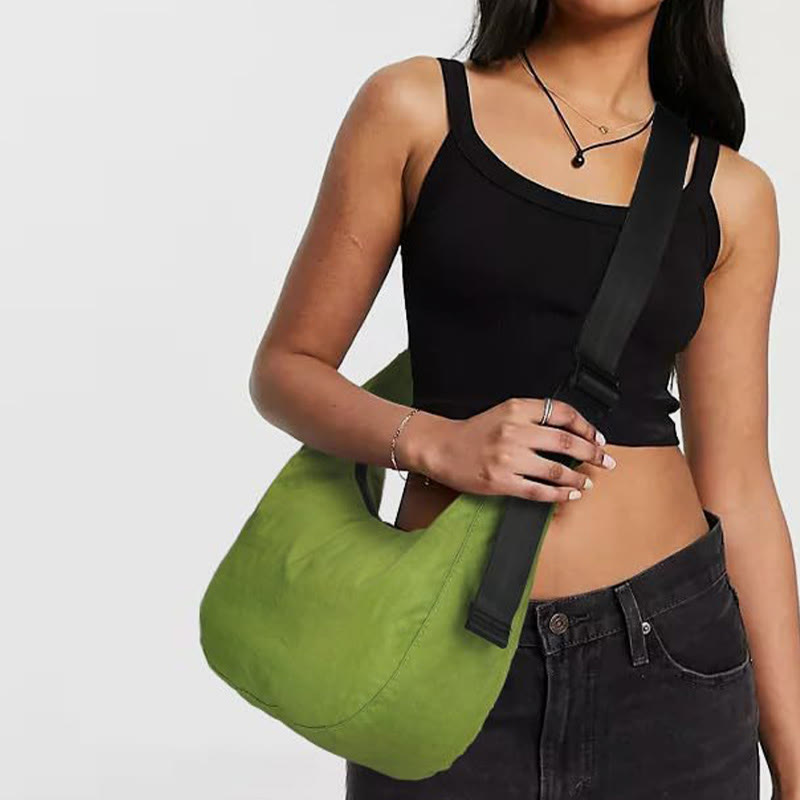 Crescent Crossbody Bag For Women Minimalist Solid Color Nylon Purse