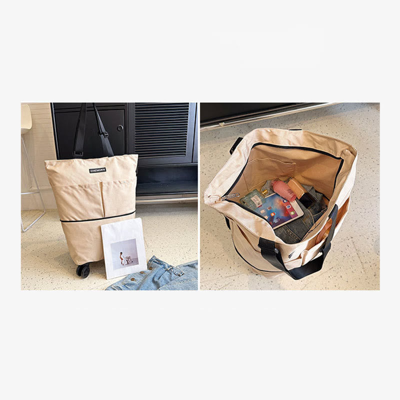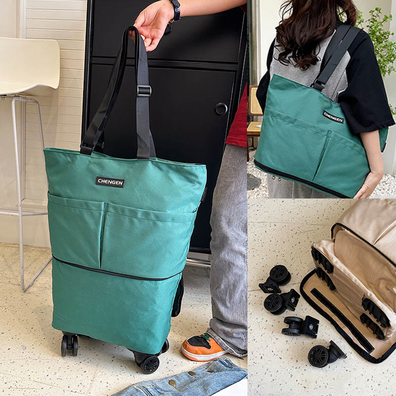Supermarket Rolling Tote Detachable Foldable Wheels Shoulder Purse For Women
