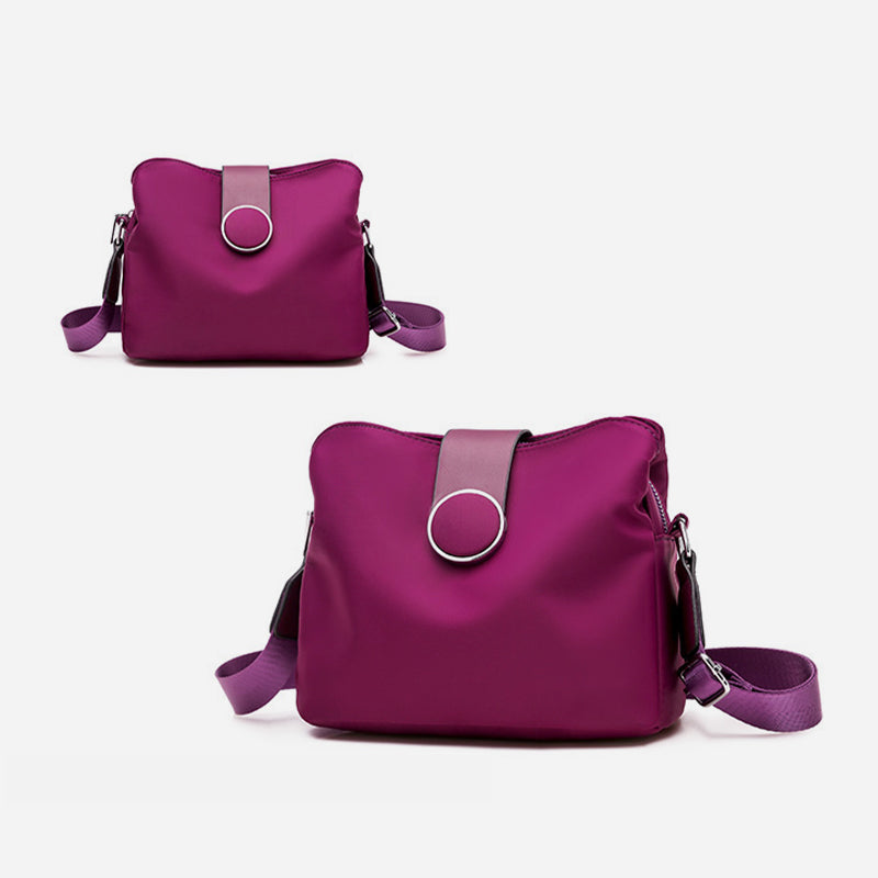 Triple Compartment Nylon Purse For Women Solid Color Crossbody Bag