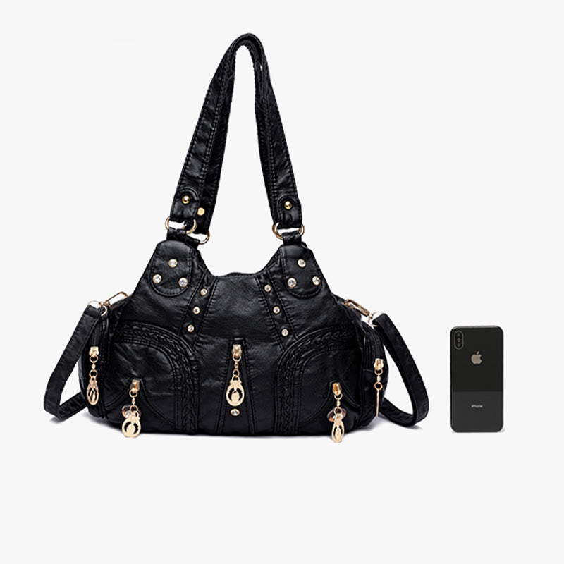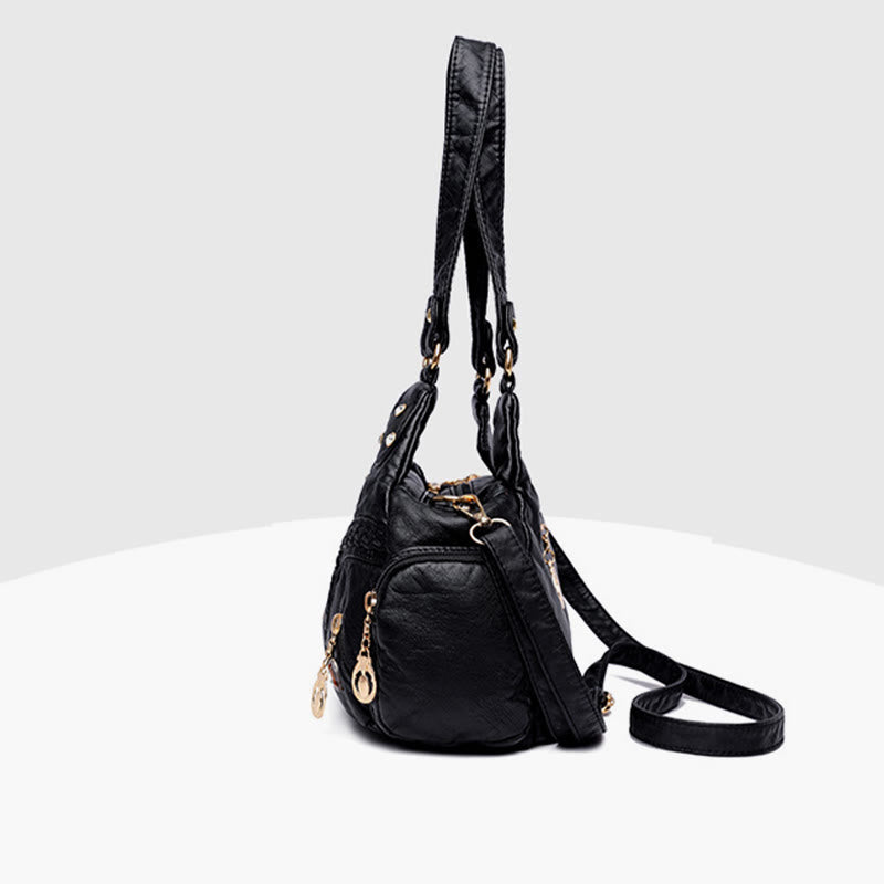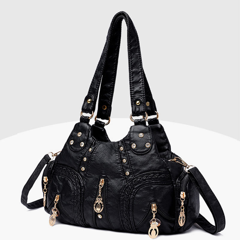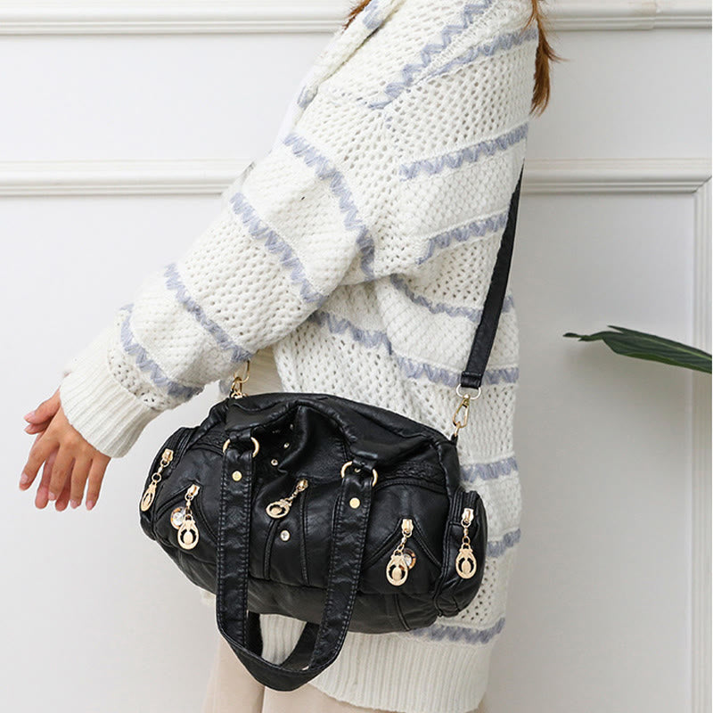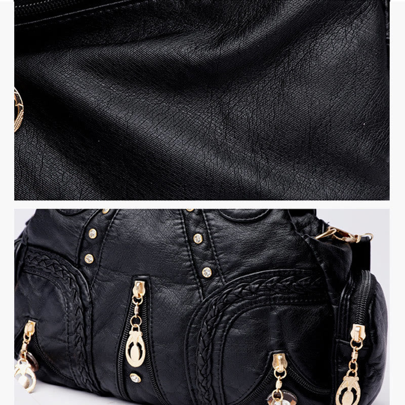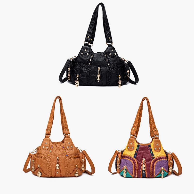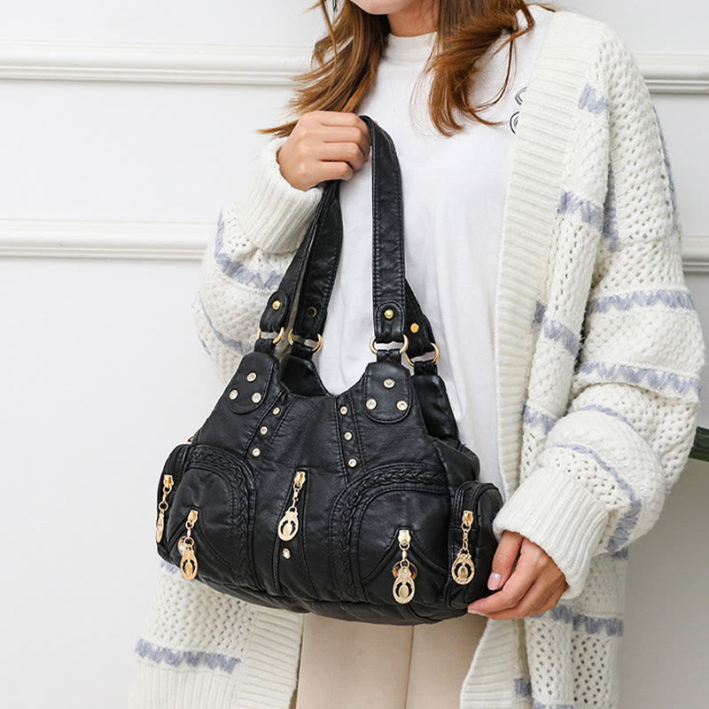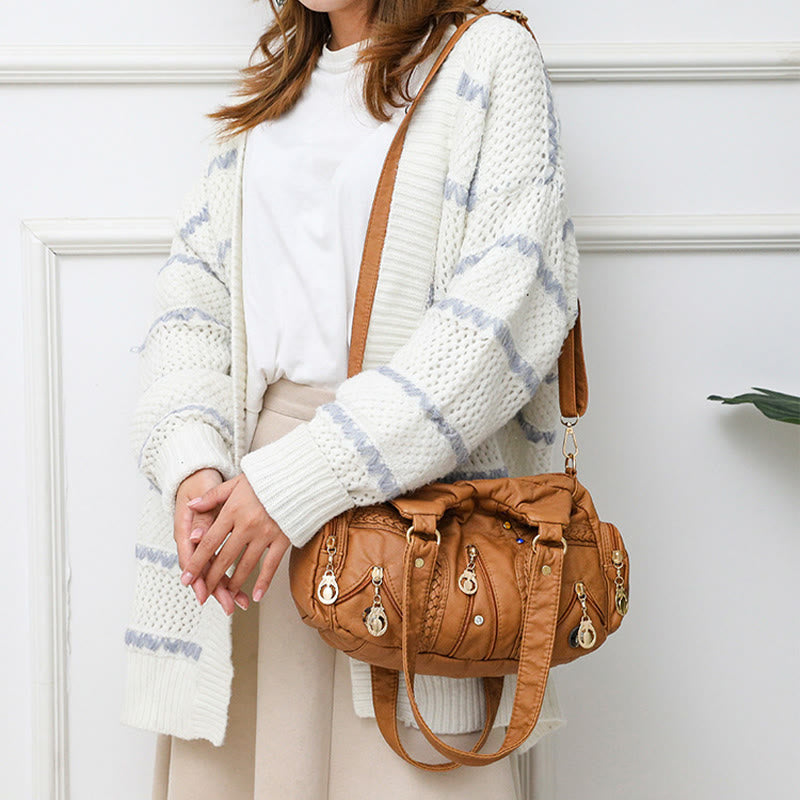 Multiple Pocket Shoulder Bag Women Colorful Large Leather Crossbody Purse