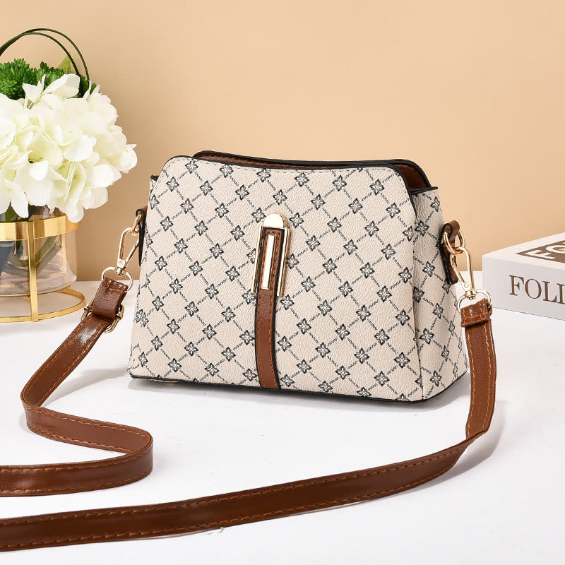 British Elegant Handbag Women Checkerboard Pattern Crossbody Leather Purse
