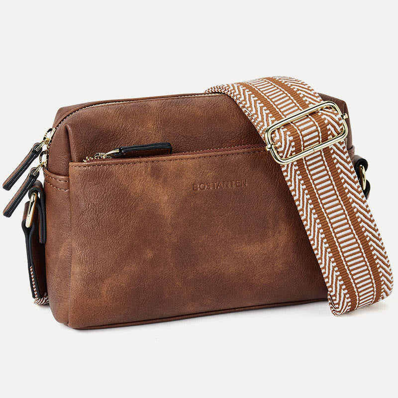 Minimalist Faux Leather Purse Triple Layer Vintage Women Crossbody Bag