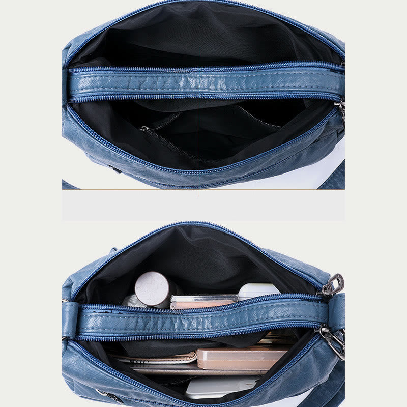 Crossbody Bag for Women Multi-Pocket Soft Leather Zipper Pocket Shoulder Purse