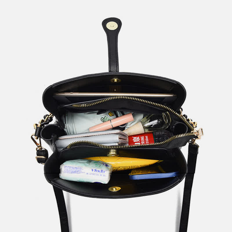 Women's Triple Compartment Satchel Leather Top-Handle Purse Crossbody Bag Handbag
