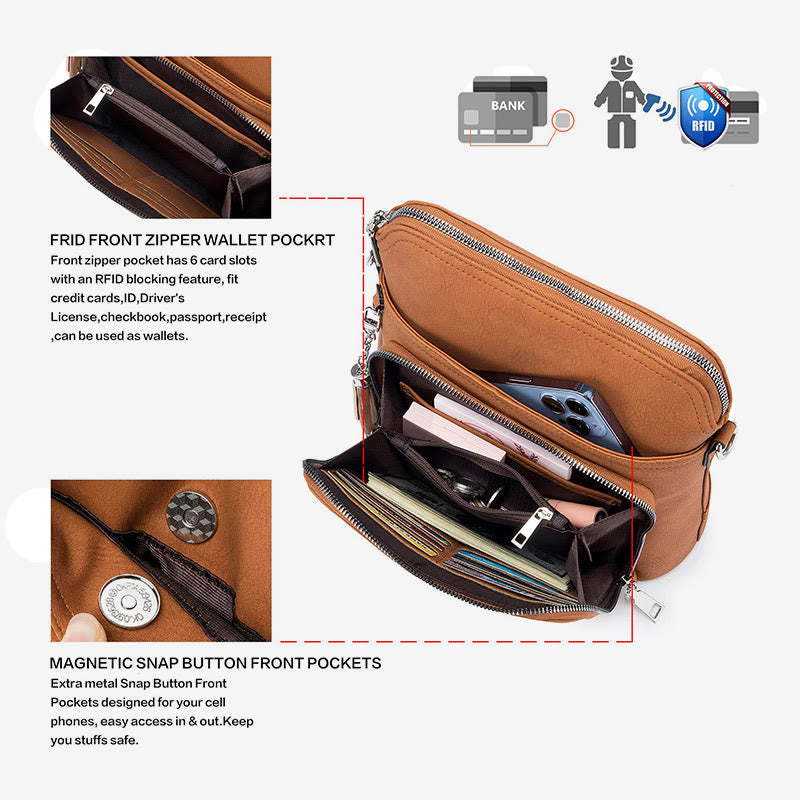 Crossbody Bag for Women Multi-Pocket Soft Leather Shoulder Purse with Card Slots