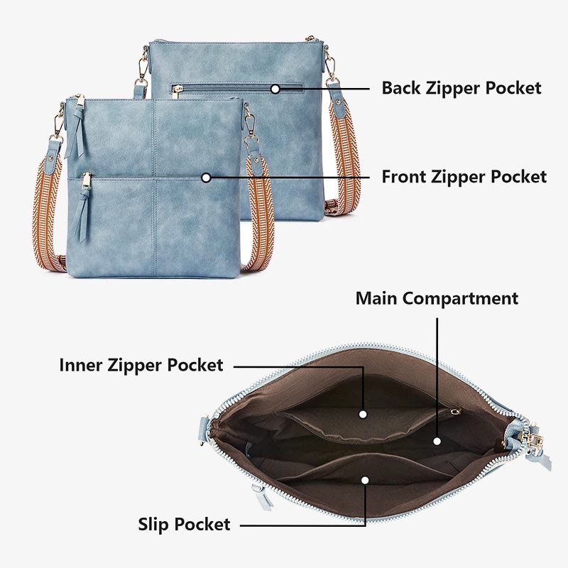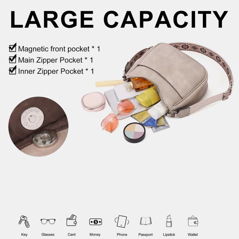 Wide Strap Crossbody Bag for Women Vegan Leather Shoulder Purse