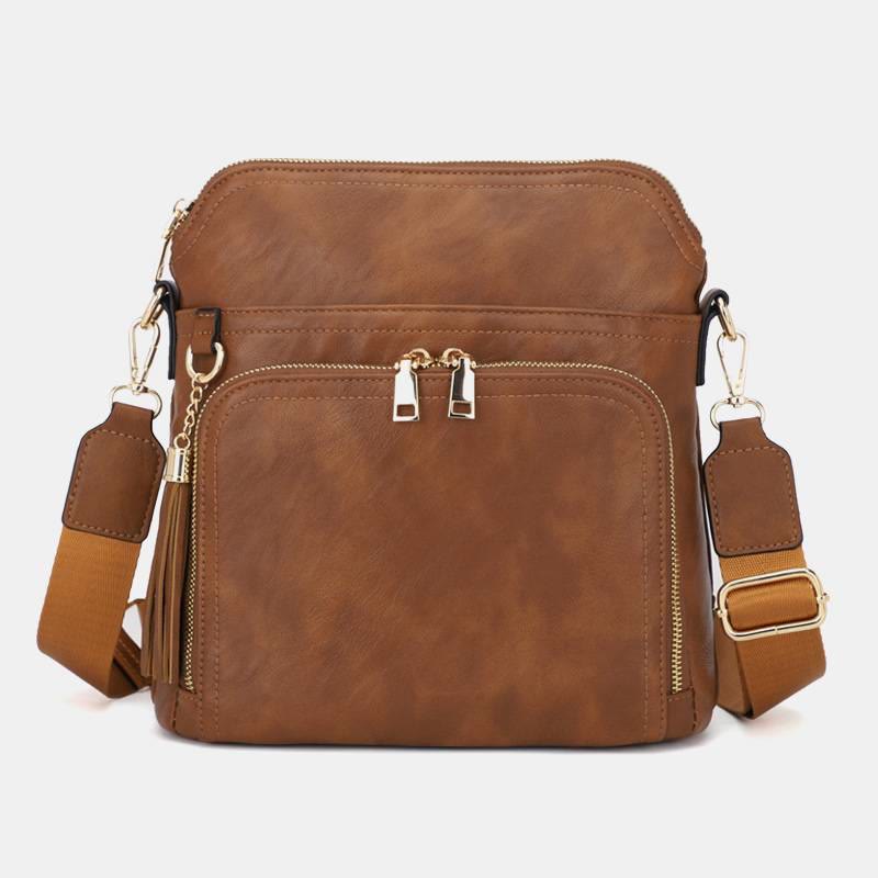 Trendy Faux Leather Crossbody Bag for Women Medium Tassel Shoulder Purses