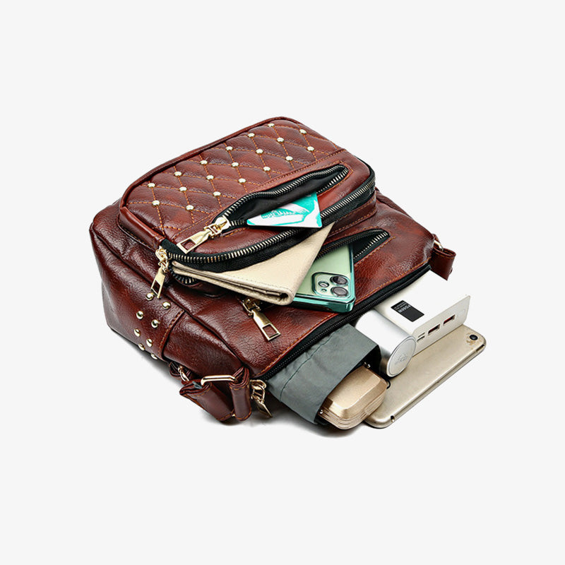 Rivet Backpack For Women Travel Soft Plain Color Leather Daypack