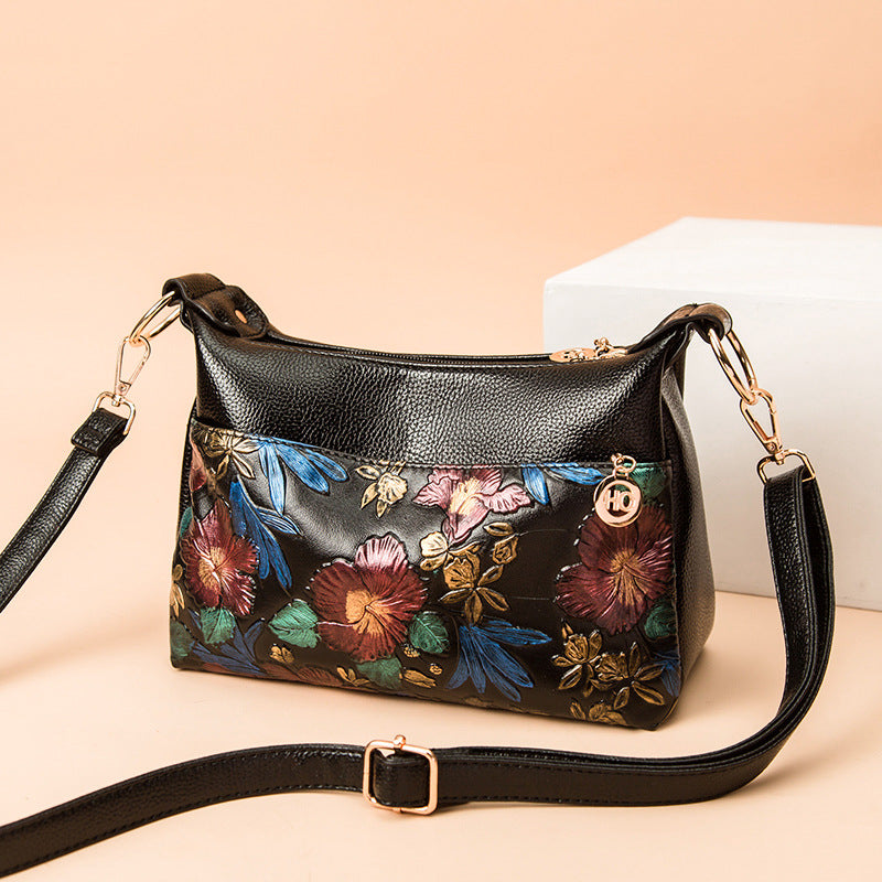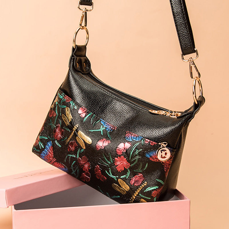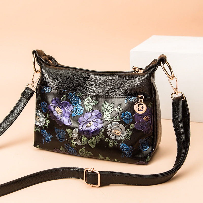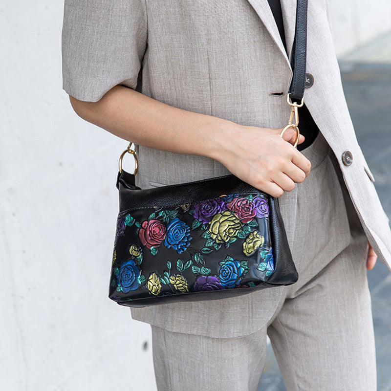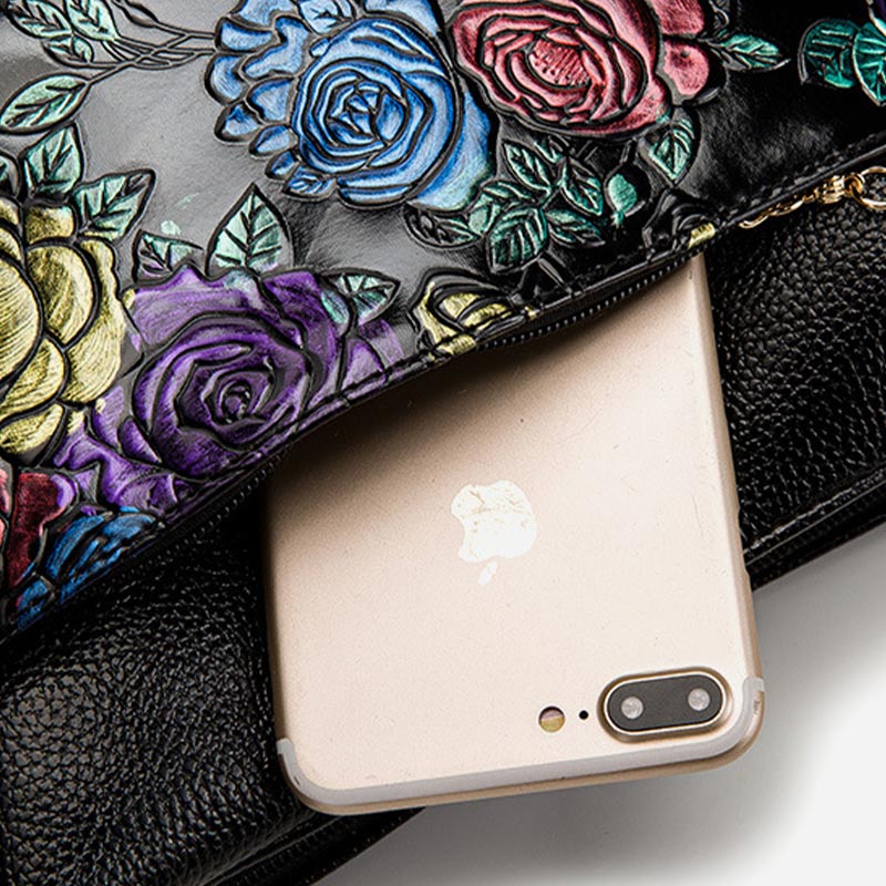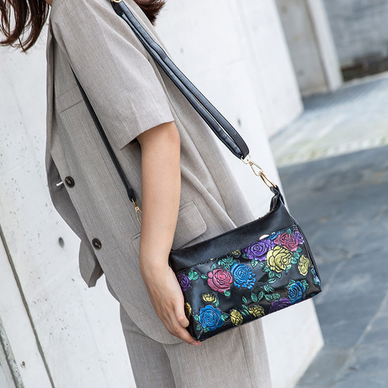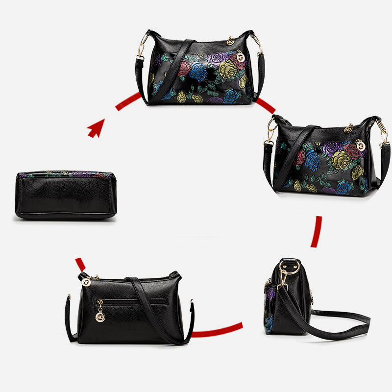 Floral Emblossing Crossbody Bag For Women Classic Leather Purse