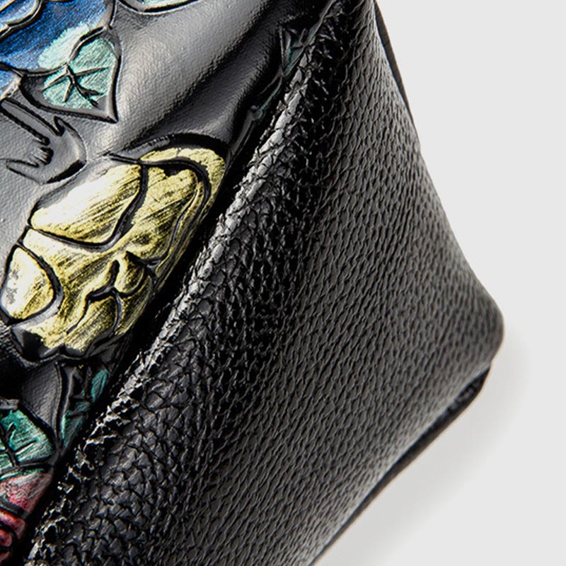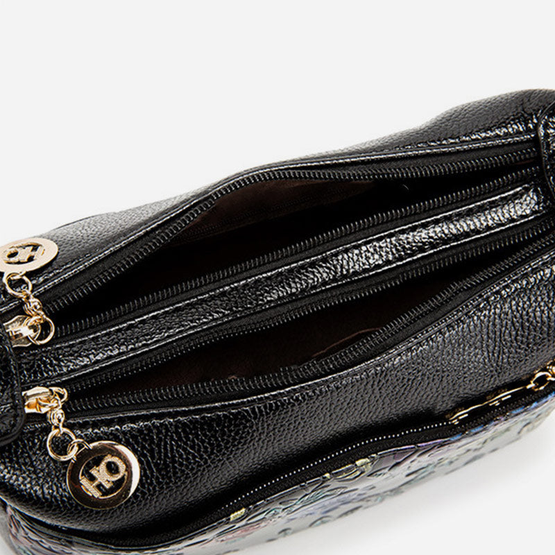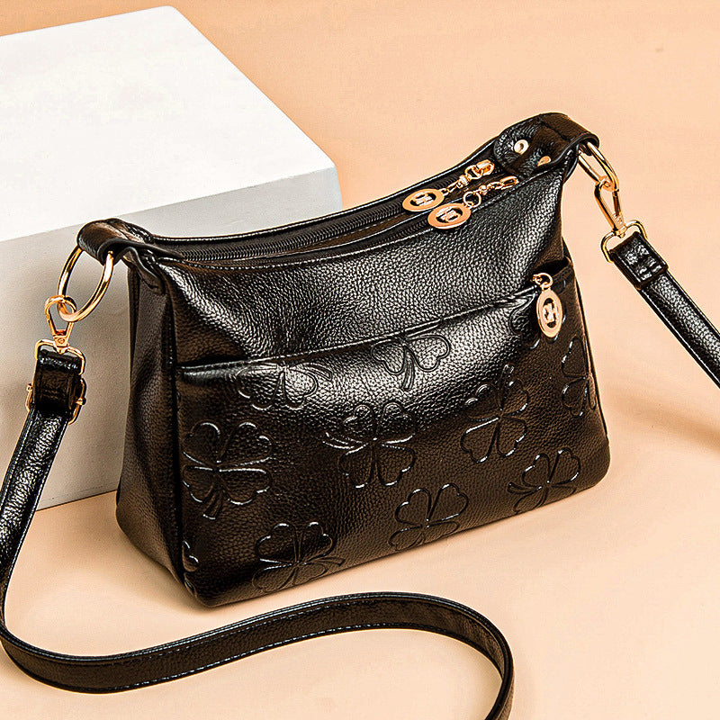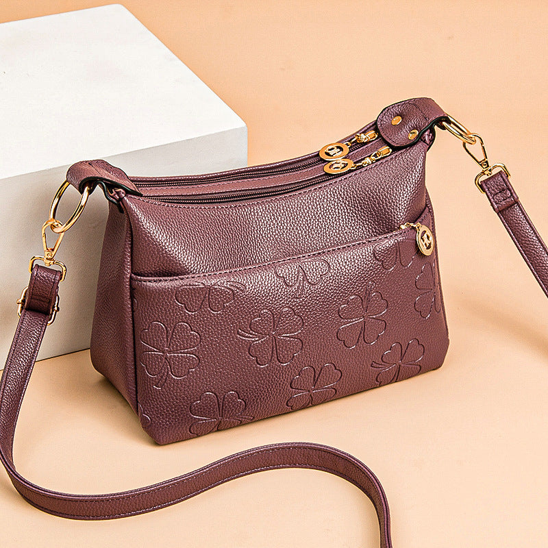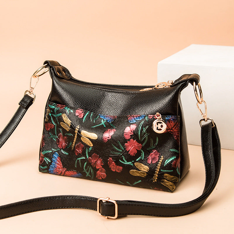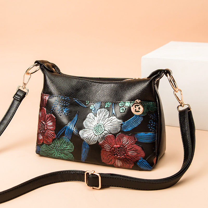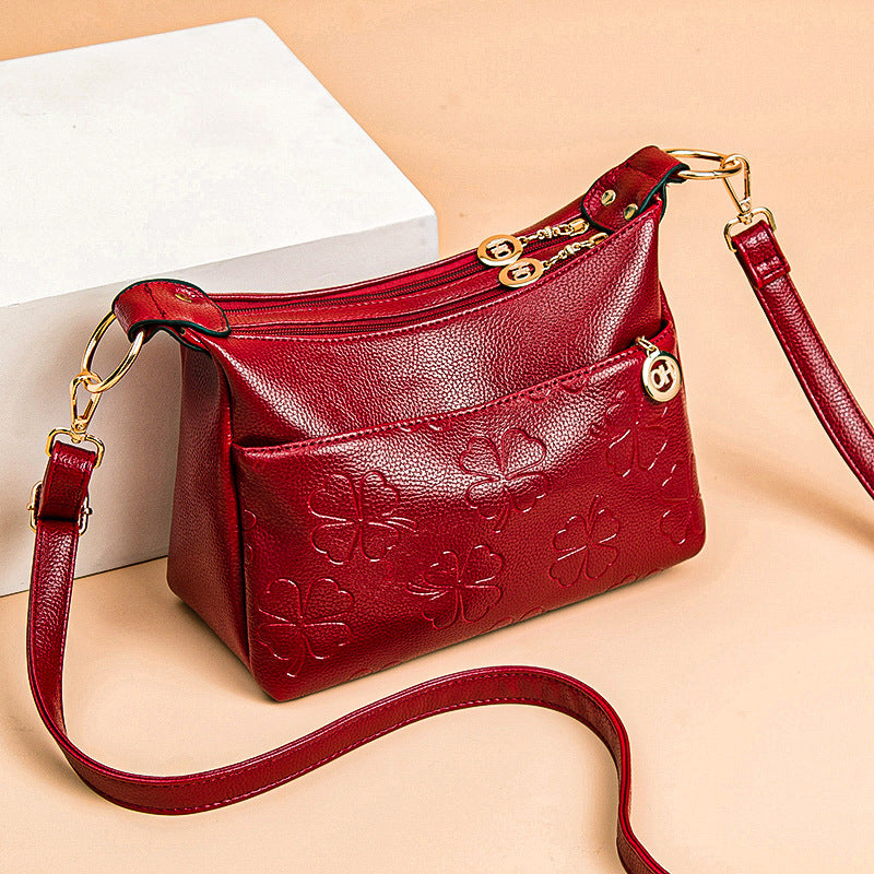 Floral Emblossing Crossbody Bag For Women Classic Leather Purse
