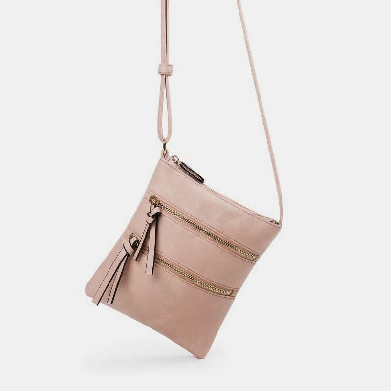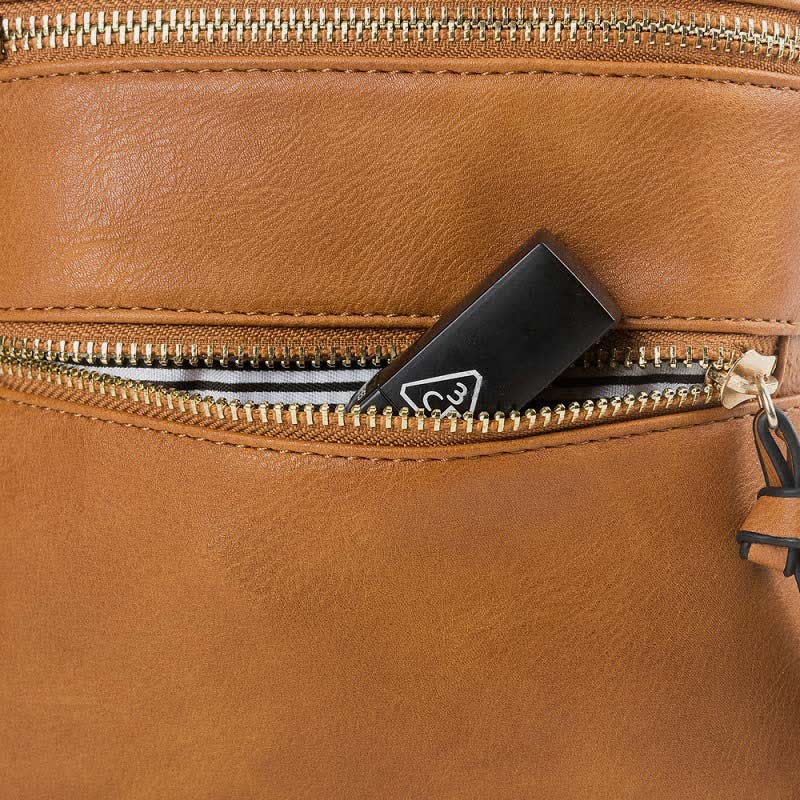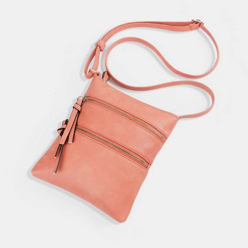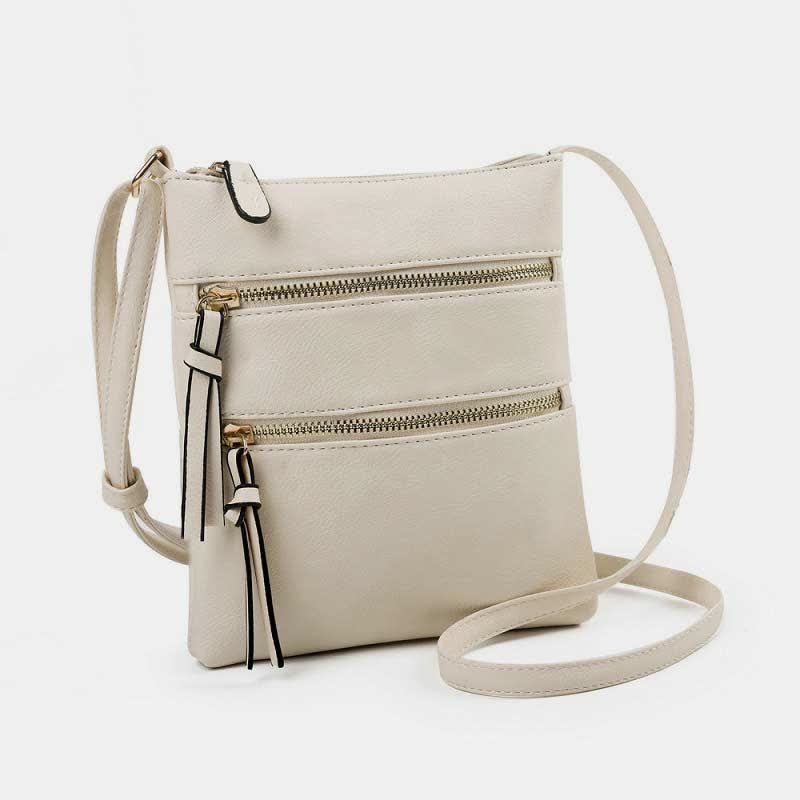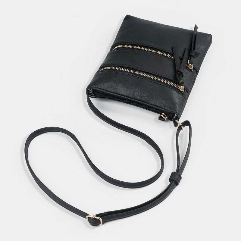 Multifunction Triple Zip Crossbody Bag Trendy Design Leather Shoulder Bag