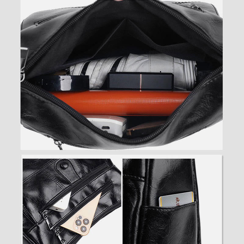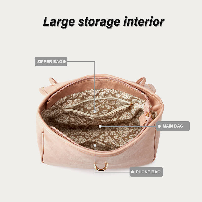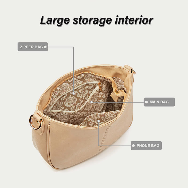 Minimalist Faux Leather Purse Triple Layer Vintage Women Crossbody Bag