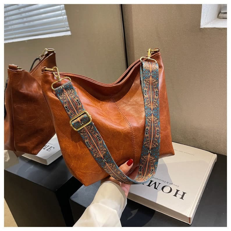 Retro Shoulder Bag For Women Wide Strape Stylish Tote Purse