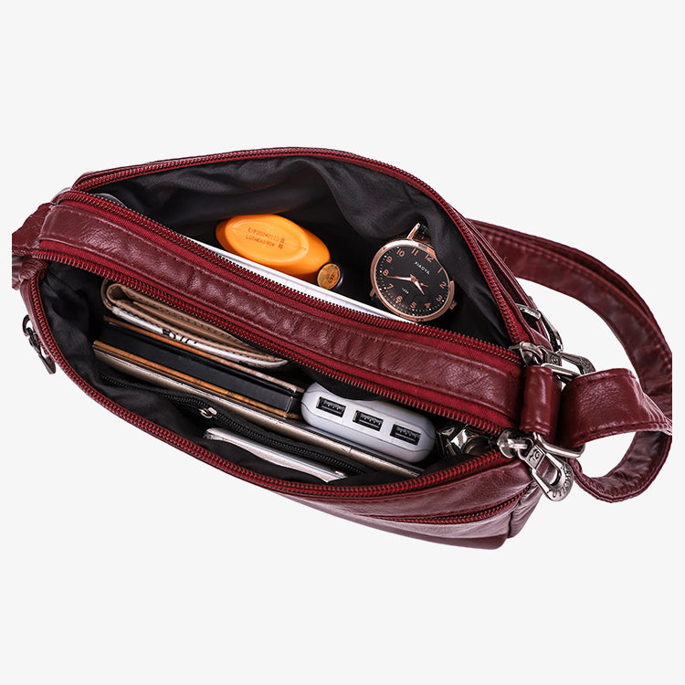 Multi-Compartment Crossbody Bag For Women Faux Leather Soft Purse