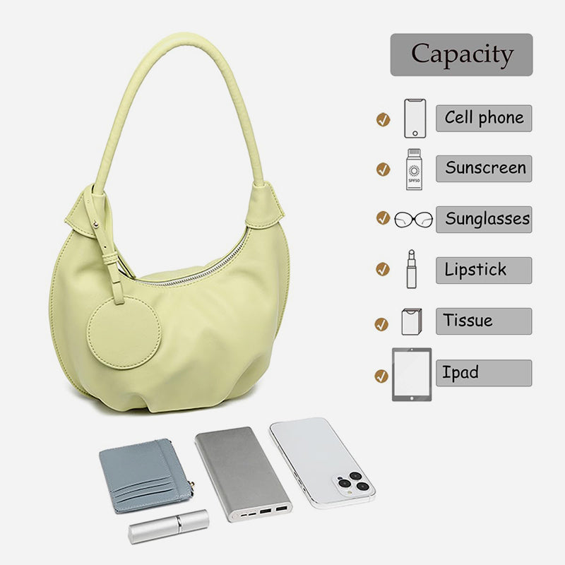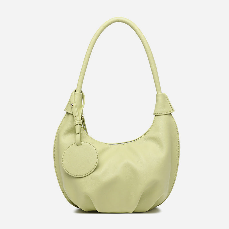 Plain Color Underarm Purse Pleated Leather Shoulder Bag For Women