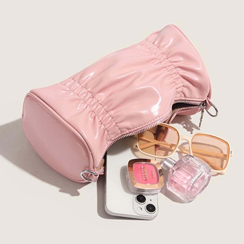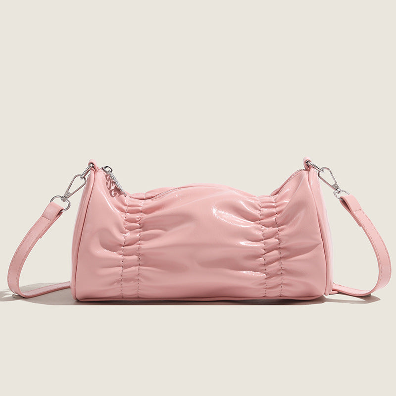 Horizontal Pleated Crossbody Bag Plain Color Leather Purse For Women