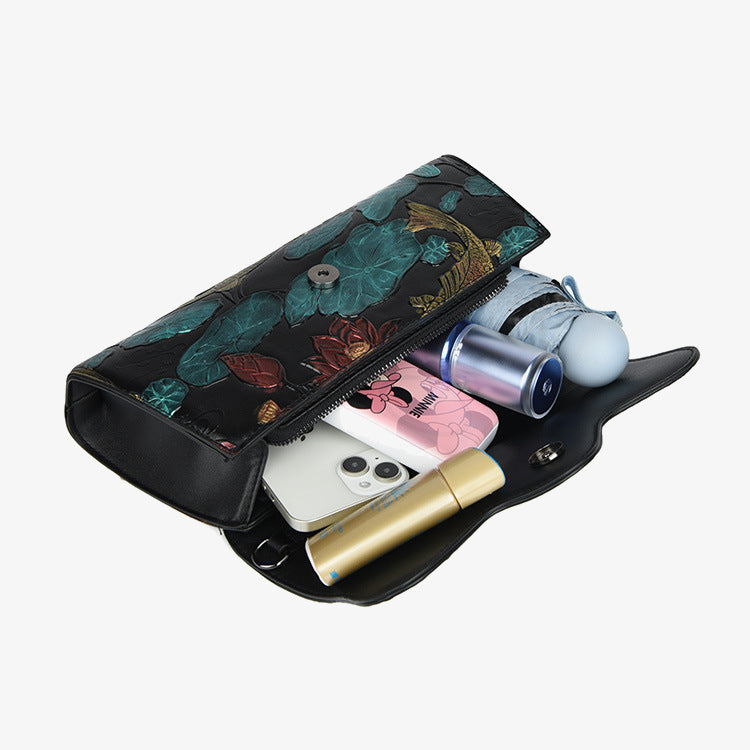 Horizontal Crossbody Bag Genuine Leather Elegant Purse For Commuter