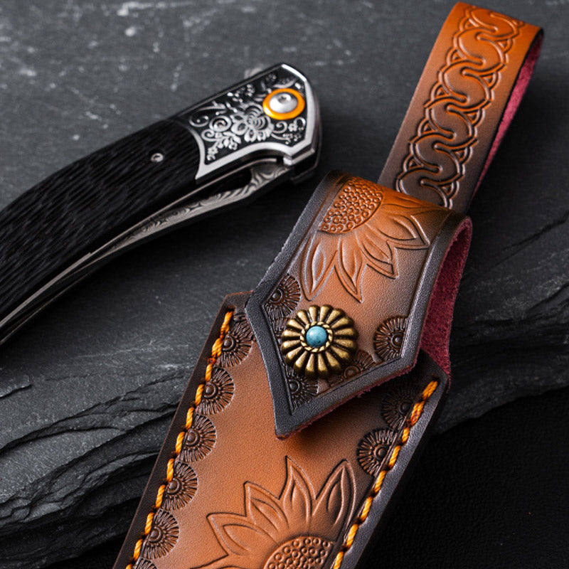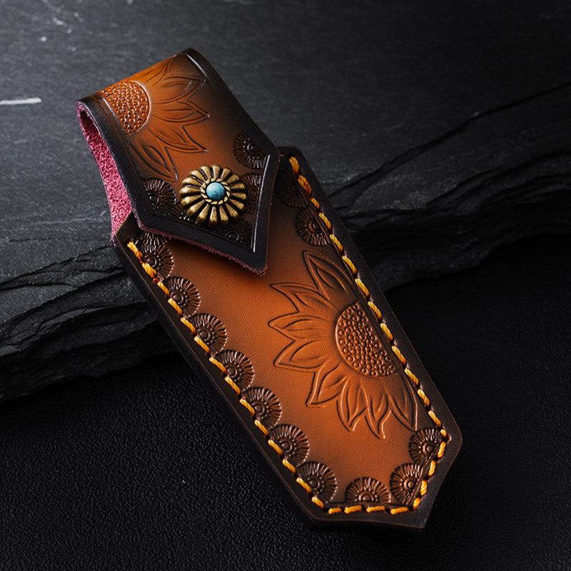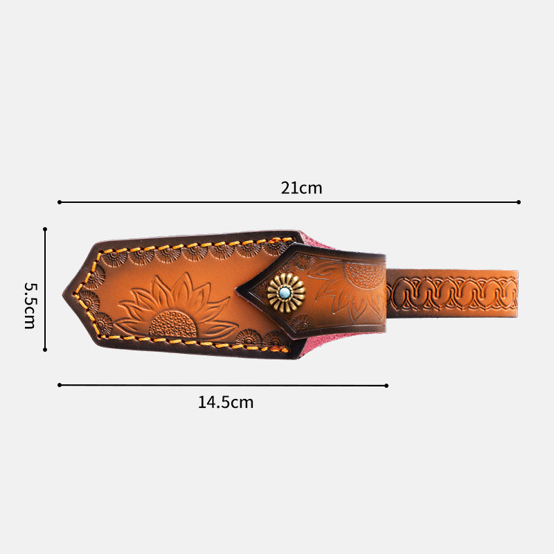 Sunflower Carving Leather Waist Bag Outdoor Portable Protective Holster