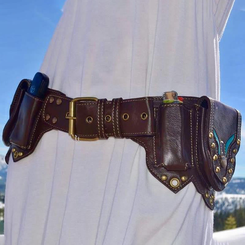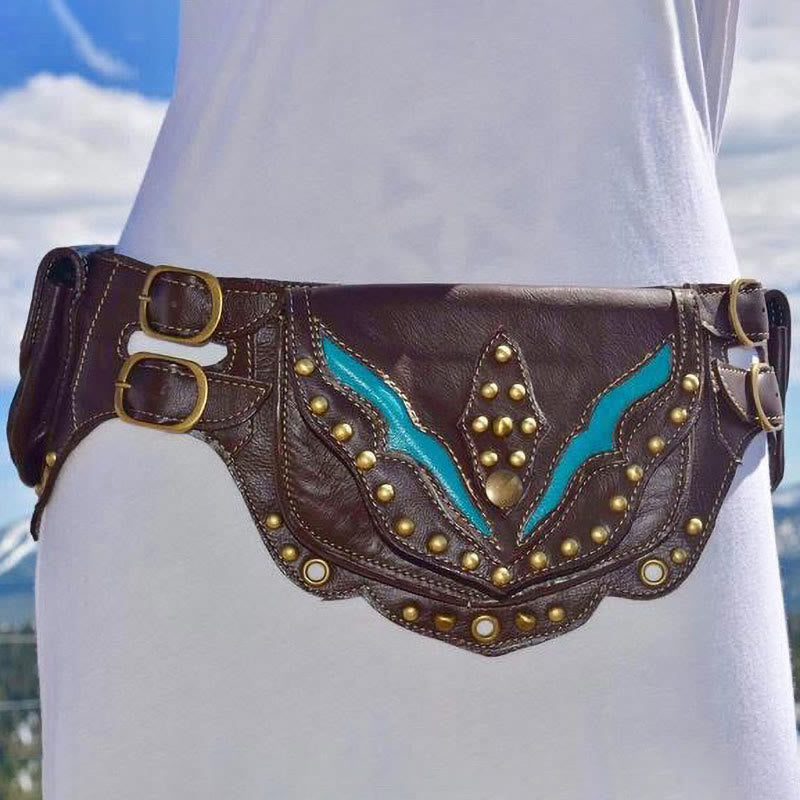 Waist Bag For Daily Retro Medieval Punk Leather Belt Bag