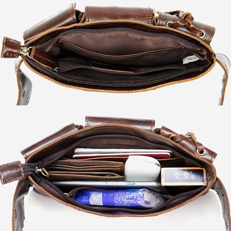 Men Classic Leather Sling Bag Waist Bag with Ajustable Strap