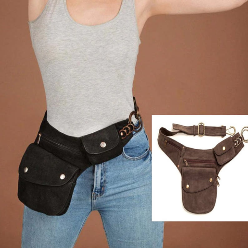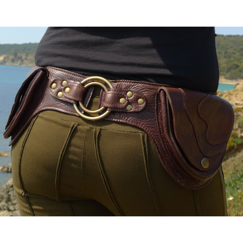 Medieval Leather Double Pocket Belt Bag Vintage Hip Belt Waist Bag