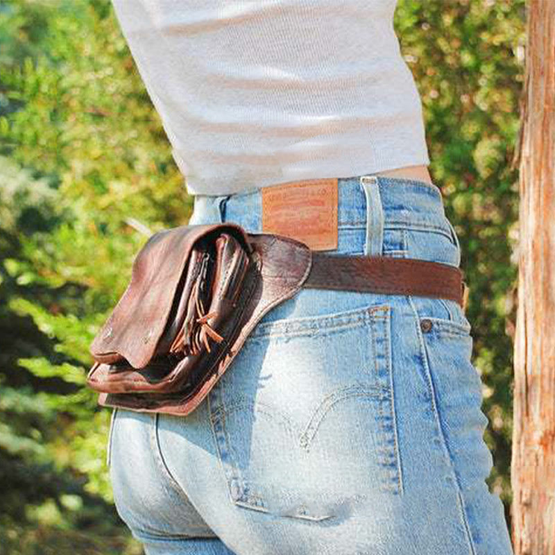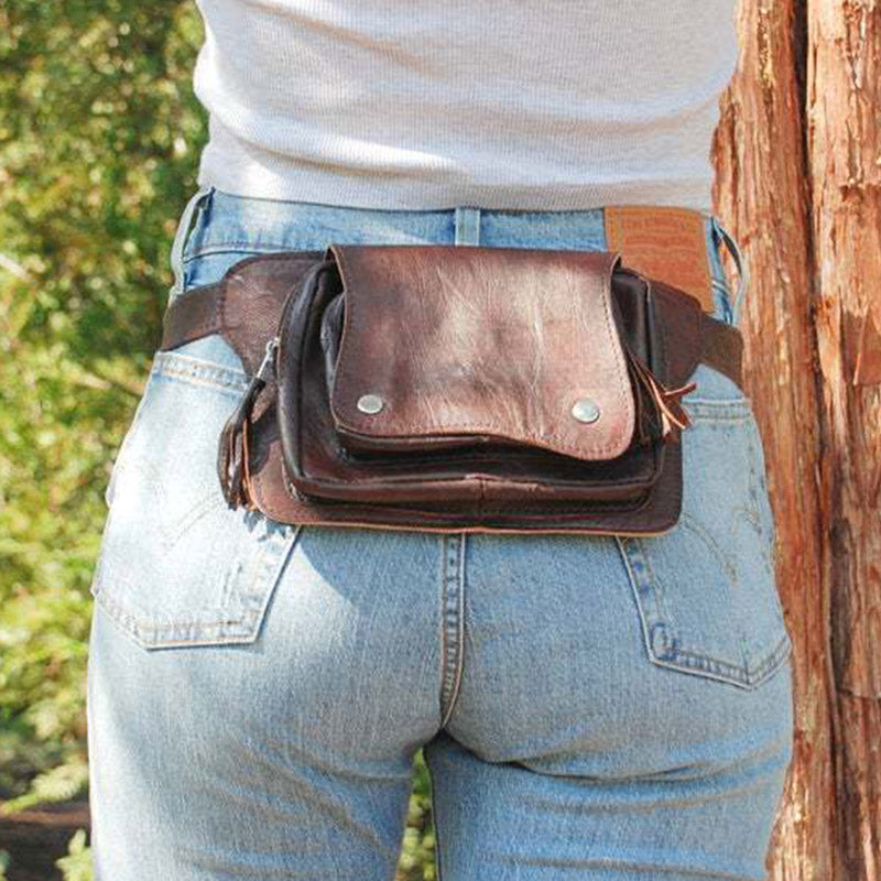Retro Leather Waist Pack Lady Shoulder Waist Bag Belt Bag