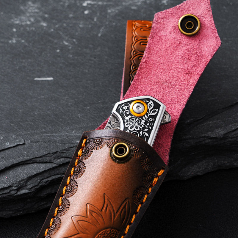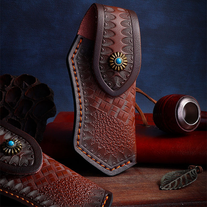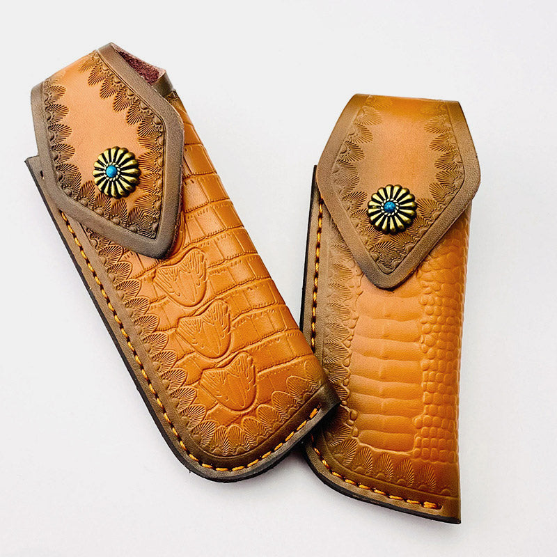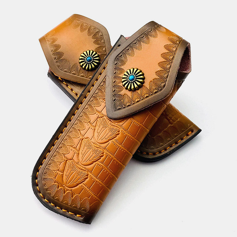 Genuine Leather Folding Knife-Sheath Case Cover Outdoor Tool for Tactics Military