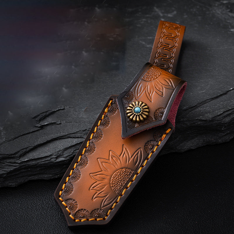 Sunflower Carving Leather Waist Bag Outdoor Portable Protective Holster
