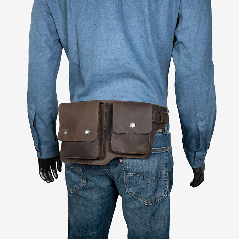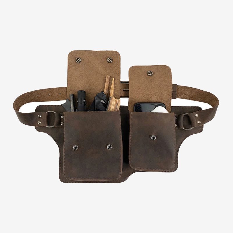 Vintage Cycling Waist Bag Double Main Pocket Leather Belt Pack