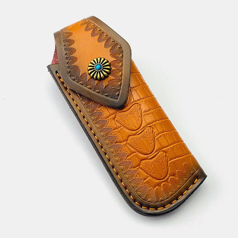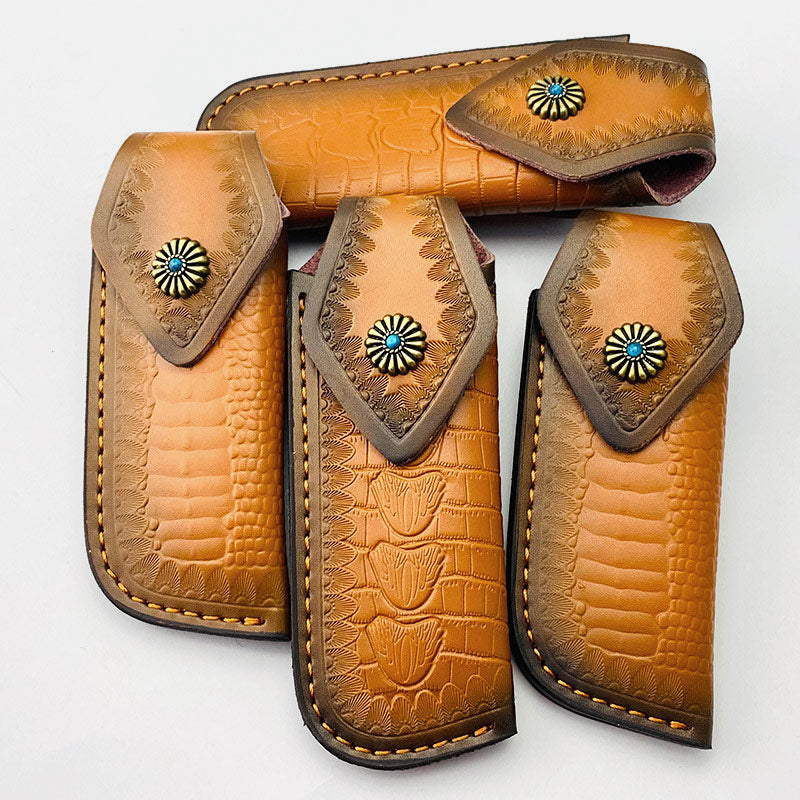 Genuine Leather Folding Knife-Sheath Case Cover Outdoor Tool for Tactics Military