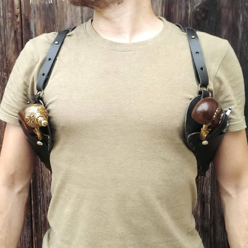 Retro Medieval Leather Shoulder Holster Adjustable Underarm Double Shoulder Bag